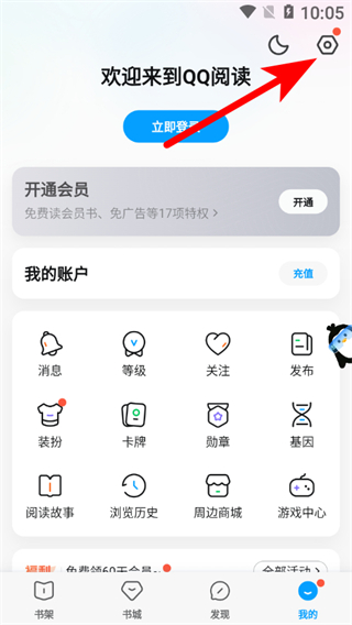 1、在QQ閱讀界面,點(diǎn)擊右下角我的選項(xiàng),進(jìn)入個(gè)人頁(yè)面。