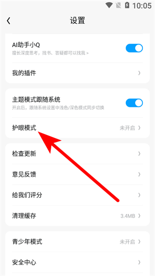 3、在設(shè)置頁(yè)面,點(diǎn)擊護(hù)眼模式選項(xiàng),進(jìn)入護(hù)眼模式設(shè)置界面。