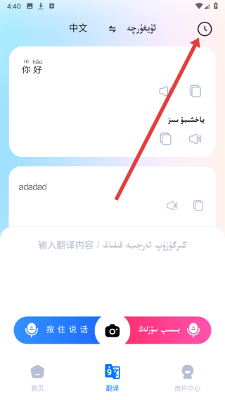1、進(jìn)入到翻譯頁(yè)面中,可以點(diǎn)擊右上方圖標(biāo)進(jìn)入查看歷史記錄。
