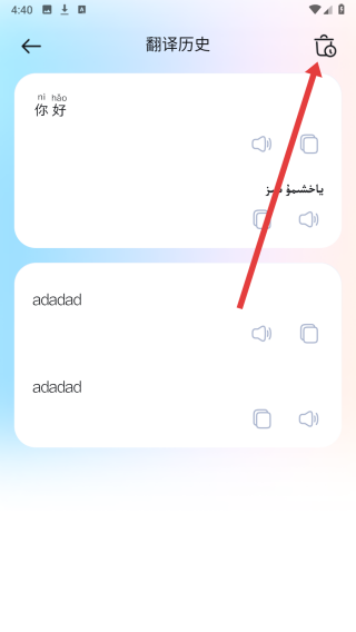 2、可以點(diǎn)擊右上角的刪除按鈕,清理掉翻譯的文字記錄。