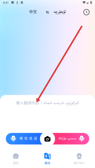 4、在刪除完成后,返回到翻譯頁(yè)面,點(diǎn)擊輸入框繼續(xù)輸入要翻譯的內(nèi)容。