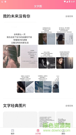 超豐富文字圖庫,有時候,一種心情正好被撞見,文字圖提供了多種成品文字圖,白底黑字圖,黑底白字圖,純色子圖,各種拼圖背景圖……或憂傷,或喜悅,或憤怒,或落寞……像極了青春。