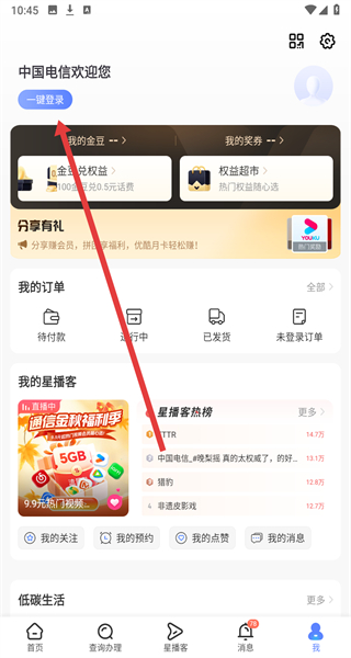 3、在個人中心頁面點擊“一鍵登錄”,進入登錄頁面。