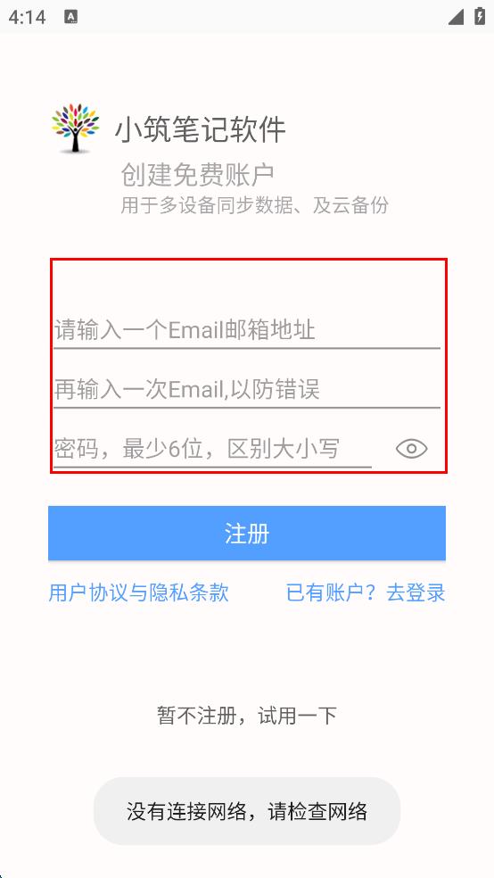 3、在注冊(cè)頁面,輸入Email郵箱地址,再輸入一次Email郵箱地址,接著輸入密碼。