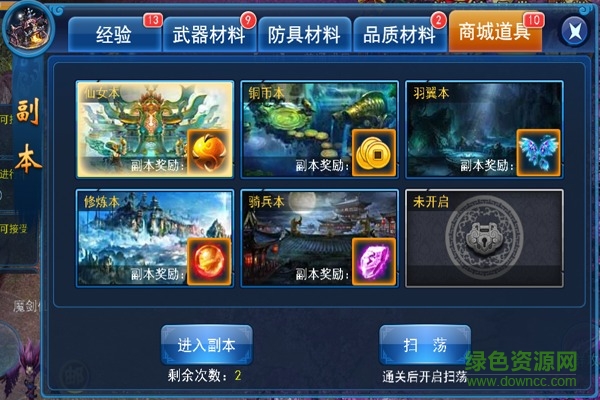 商城道具本分為五個不同類型的關(guān)卡,分別產(chǎn)出不同道具。