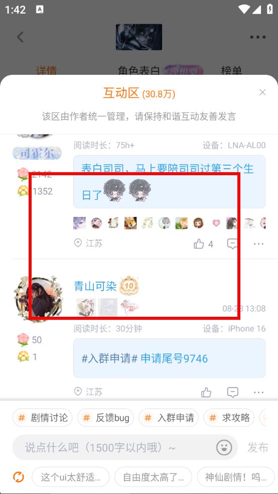 3、在互動(dòng)區(qū)里就能看到其他玩家發(fā)布的各類評(píng)論,還可參與互動(dòng)交流。