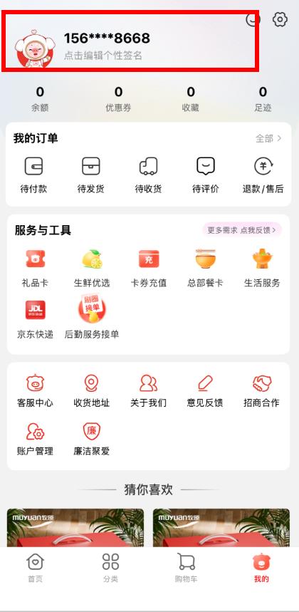 1、打開聚愛優(yōu)選App,點(diǎn)擊底部導(dǎo)航欄中的我的選項(xiàng),進(jìn)入個(gè)人頁(yè)面。