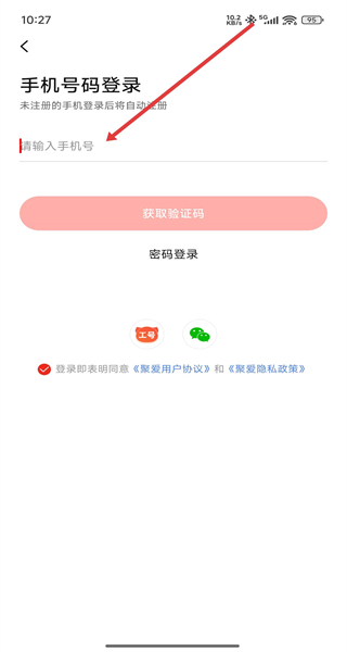 3、在手機(jī)號(hào)碼登錄頁(yè)面輸入手機(jī)號(hào)碼,點(diǎn)擊“獲取驗(yàn)證碼”。