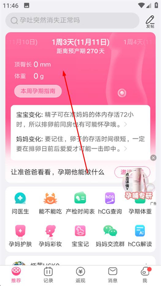 1、在美柚首頁點擊底部的記錄選項,進入記錄頁面。