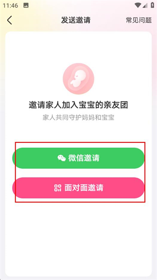 3、在發(fā)送邀請頁面選擇邀請方式,即可關聯(lián)老公加入寶寶的親友團。