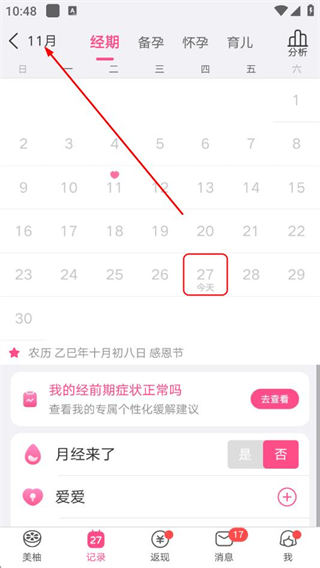 2、在記錄頁面點擊左上角的11月,打開月份選擇界面。