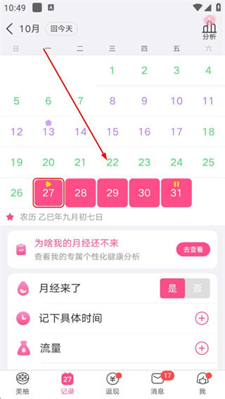 4、在10月的日期頁面中,即可查看上個月的月經(jīng)記錄。