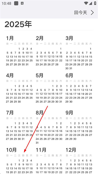 3、在月份選擇界面中,點擊10月切換到上個月的日期頁面。
