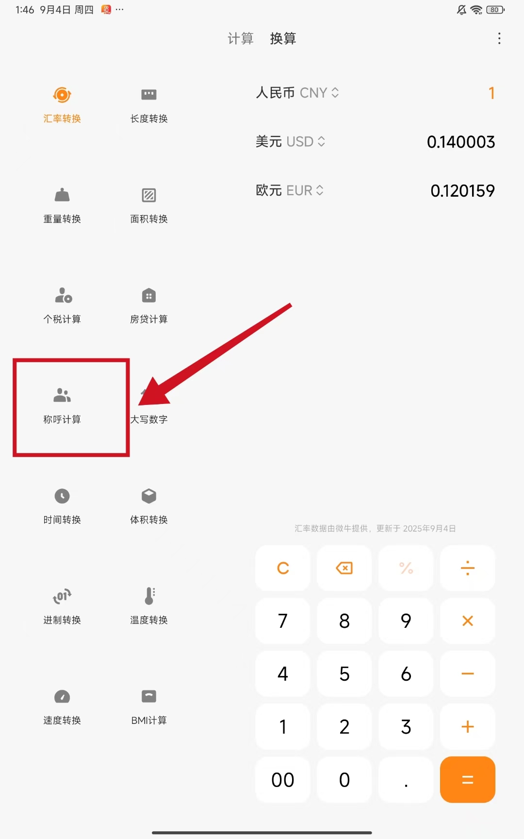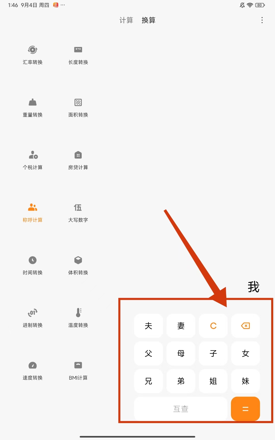 2、在換算功能頁(yè)面里,找到并點(diǎn)擊稱(chēng)呼計(jì)算選項(xiàng),進(jìn)入稱(chēng)呼計(jì)算界面。