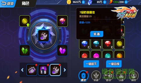 晶體背包里顯示已獲得的全部晶體,按一鍵卸下可重置全部裝備上的晶體,按一鍵合成可批量合成同類型的晶體。