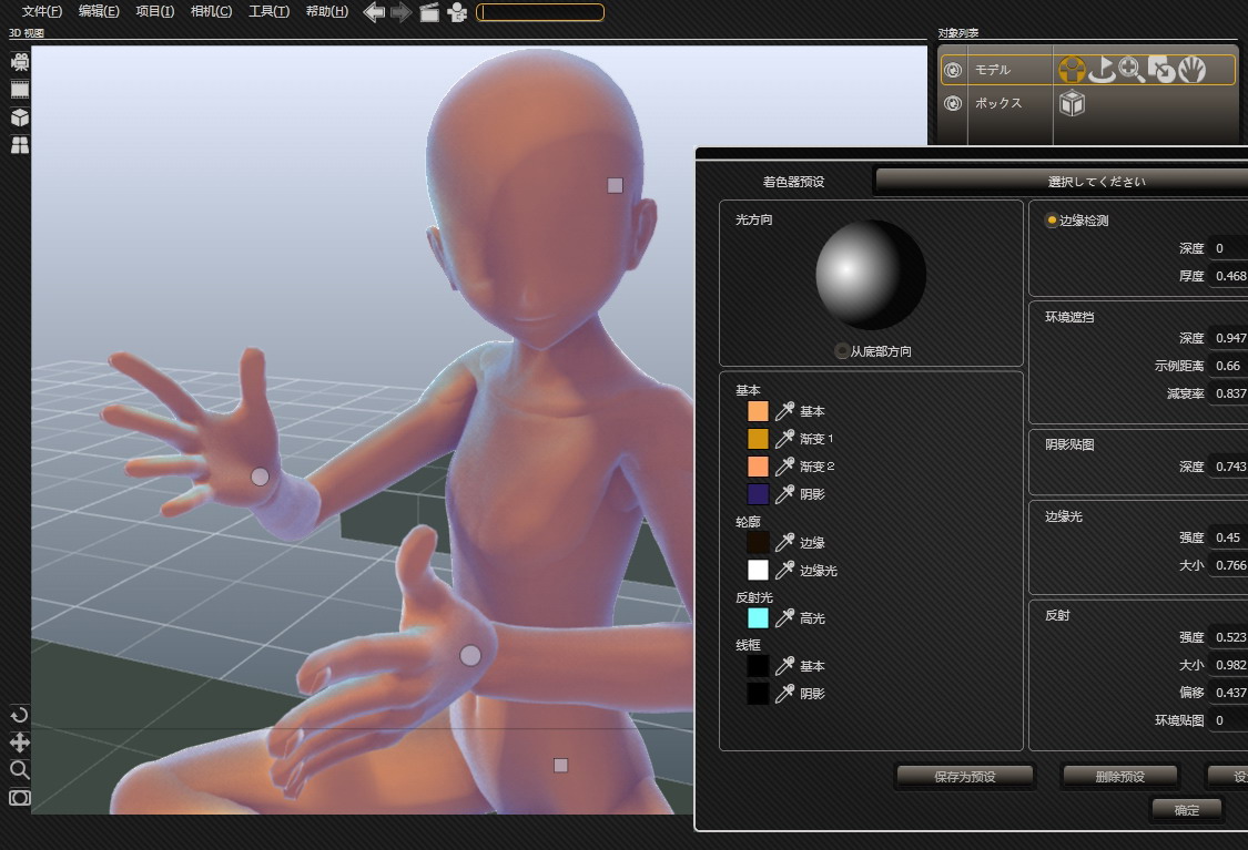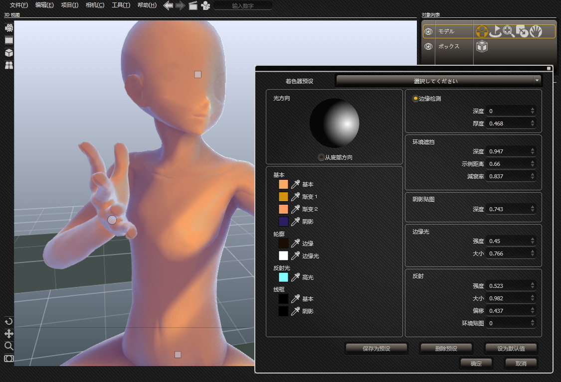 說到這里,姿勢擺放已經(jīng)沒什么好說的了,確實(shí)非常容易上手,拿來折騰折騰就明白。如果只是參考一下姿勢,到這個(gè)程度其實(shí)已經(jīng)很夠用了。但是這個(gè)軟件的光源做的也非常棒,而且調(diào)整起來非常方便,我想會(huì)有人愿意拿這個(gè)參考光源的。