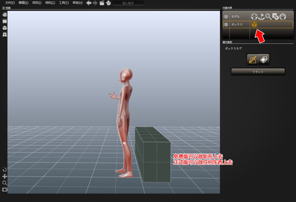 免費(fèi)版只能加個(gè)矩形什么的,如果畫面里需要其他元素可以做個(gè)參考(比如設(shè)定一下椅子的位置這一類)。正式版可以導(dǎo)入obj等常用模型格式。