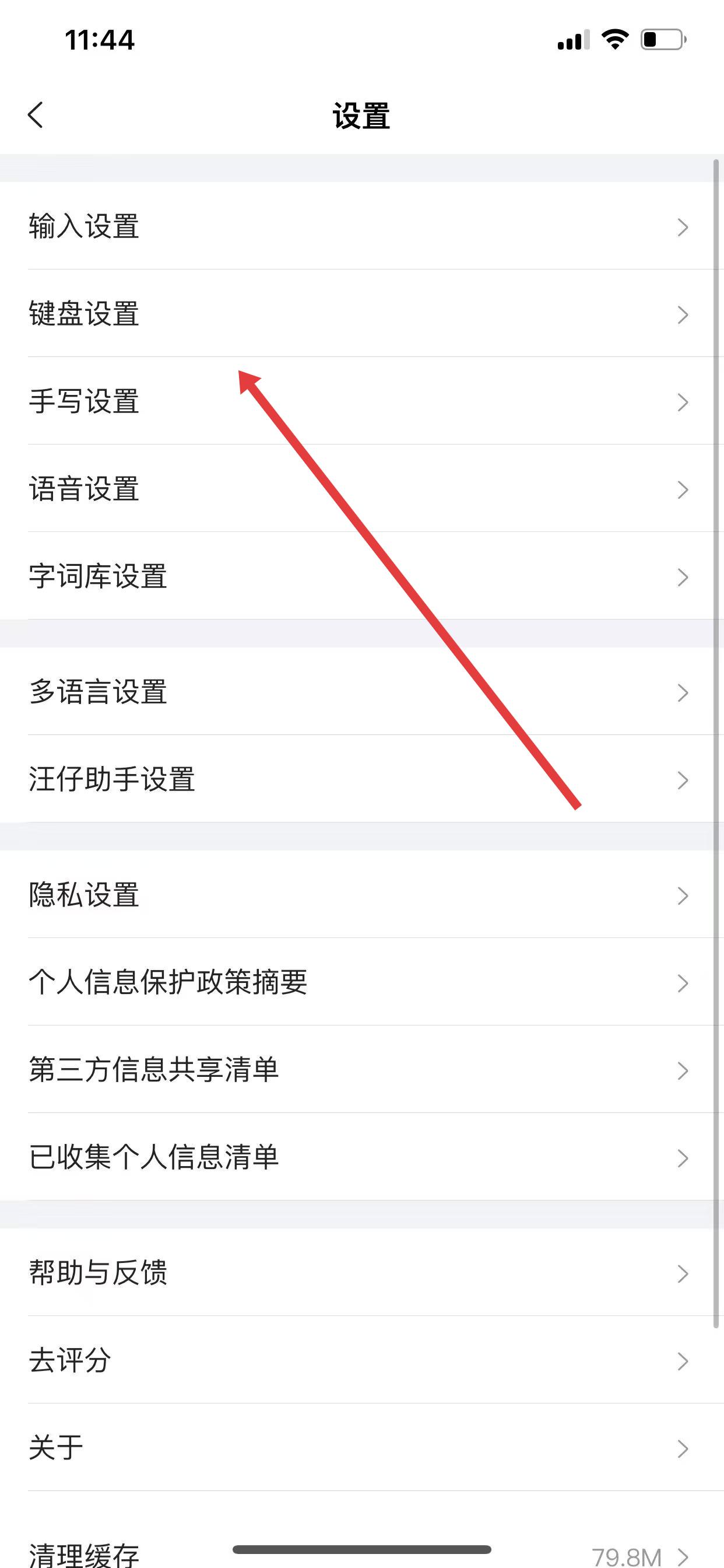2、在設(shè)置頁面中,點擊手寫設(shè)置選項,進入手寫設(shè)置界面。