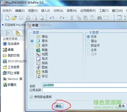 1.打開(kāi)PROE點(diǎn)擊新建——零件,名稱按默認(rèn),點(diǎn)擊確定。
