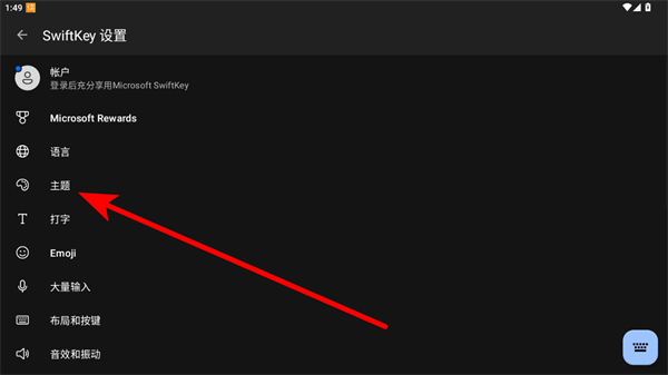 1、進入SwiftKey設置界面,點擊其中的主題選項。