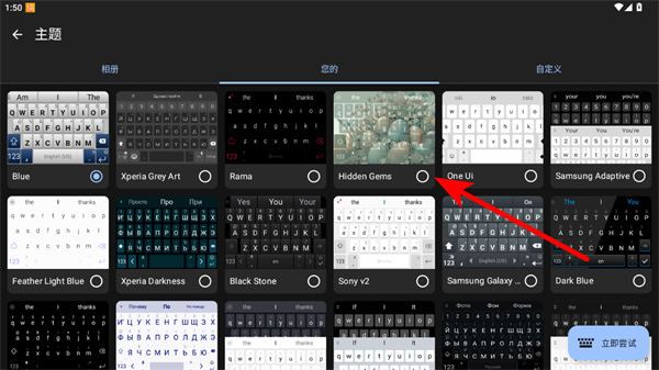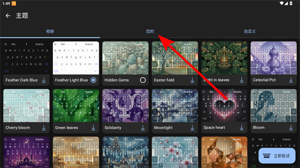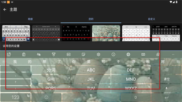 3、在您的欄目下展示的眾多皮膚里,選擇自己喜歡的鍵盤皮膚。