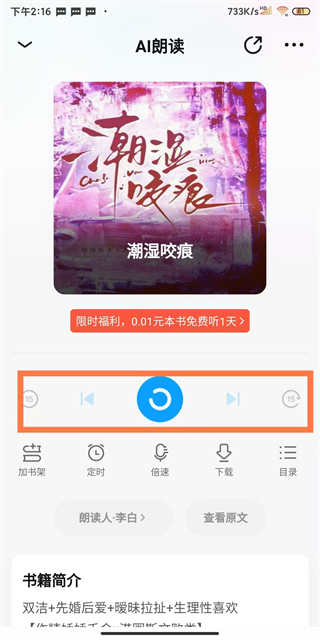 2、在書籍詳情頁面,點擊聽書按鈕,進入AI朗讀頁面。