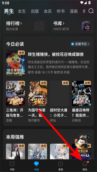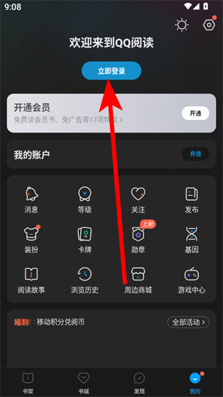 1、在QQ閱讀書城頁面,點擊右下角我的選項,進入個人界面。