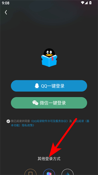 3、在登錄選擇頁面,點擊其他登錄方式,進入手機號注冊界面。