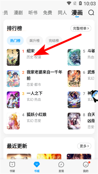 2、在漫畫頻道頁面,選擇免費漫畫作品,如熱門榜中的漫畫,進入漫畫閱讀界面。