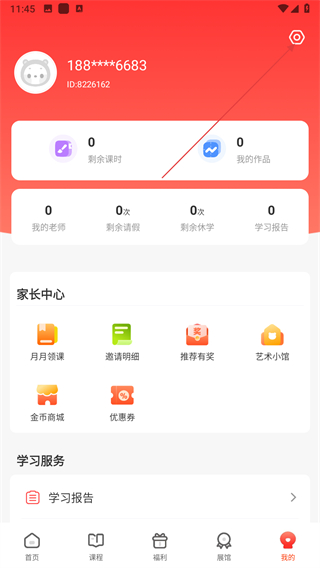 1、打開(kāi)美術(shù)寶1對(duì)1,點(diǎn)擊右上角的設(shè)置。