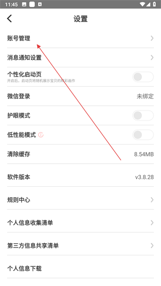 3、在設(shè)置界面中,點(diǎn)擊賬號(hào)管理選項(xiàng)。