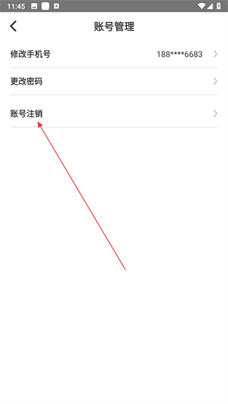 4、在賬號(hào)管理頁(yè)面,點(diǎn)擊賬號(hào)注銷選項(xiàng)。