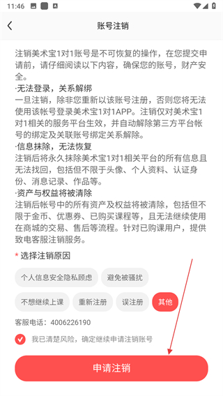 5、選擇注銷原因,點(diǎn)擊申請(qǐng)注銷按鈕。
