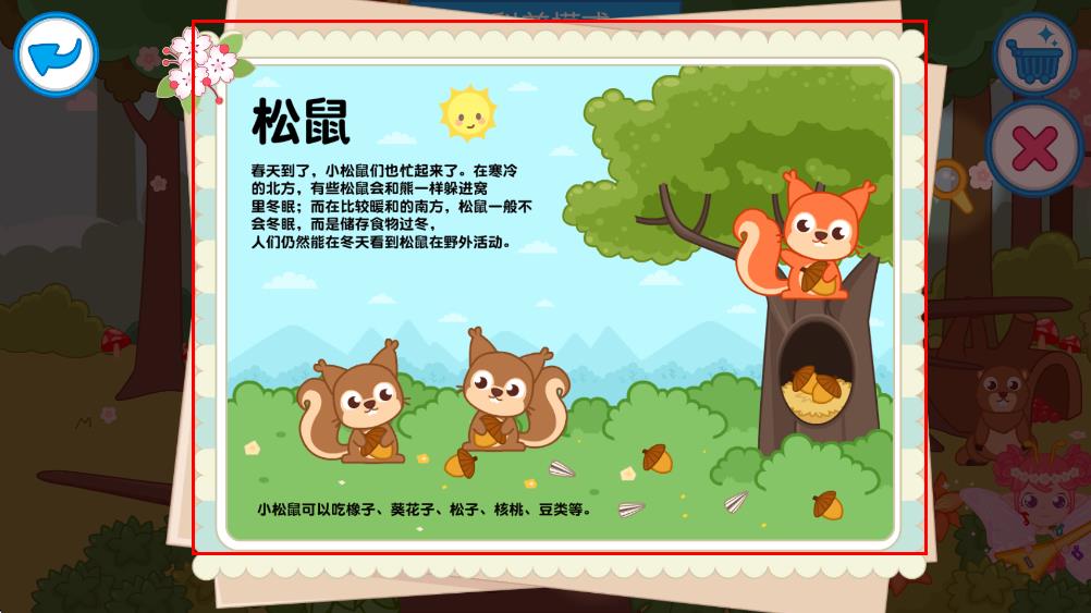 4、觸發(fā)科普內(nèi)容后,查看關(guān)于松鼠的介紹信息,了解相關(guān)知識完成互動(dòng)。