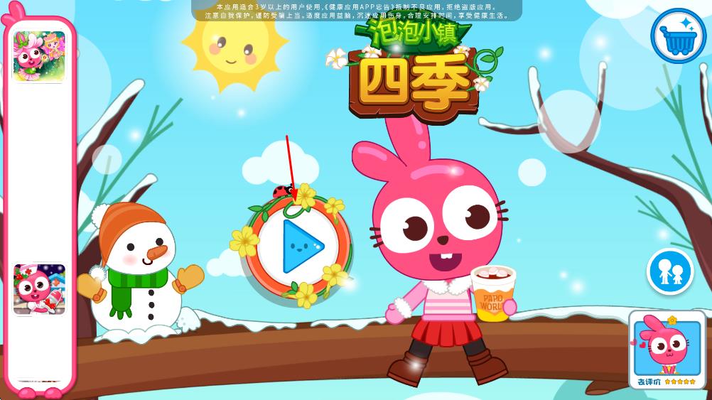 1、進(jìn)入泡泡小鎮(zhèn)四季游戲界面,點(diǎn)擊中間的播放按鈕,進(jìn)入季節(jié)選擇頁面。