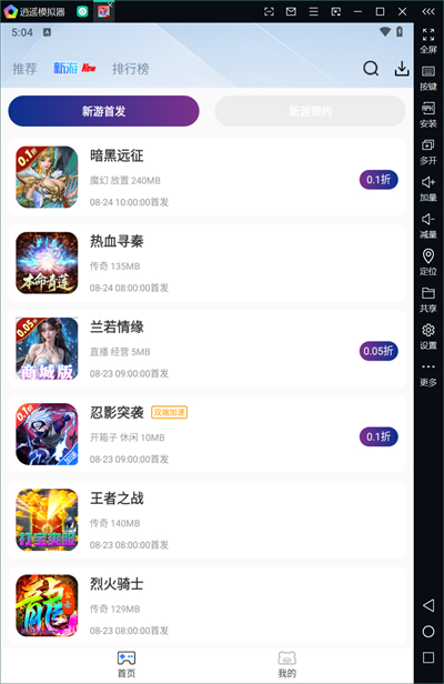 2、點擊上方的新游選項可以查看新上線的手游,讓你每天都能體驗到不一樣的游戲體驗;