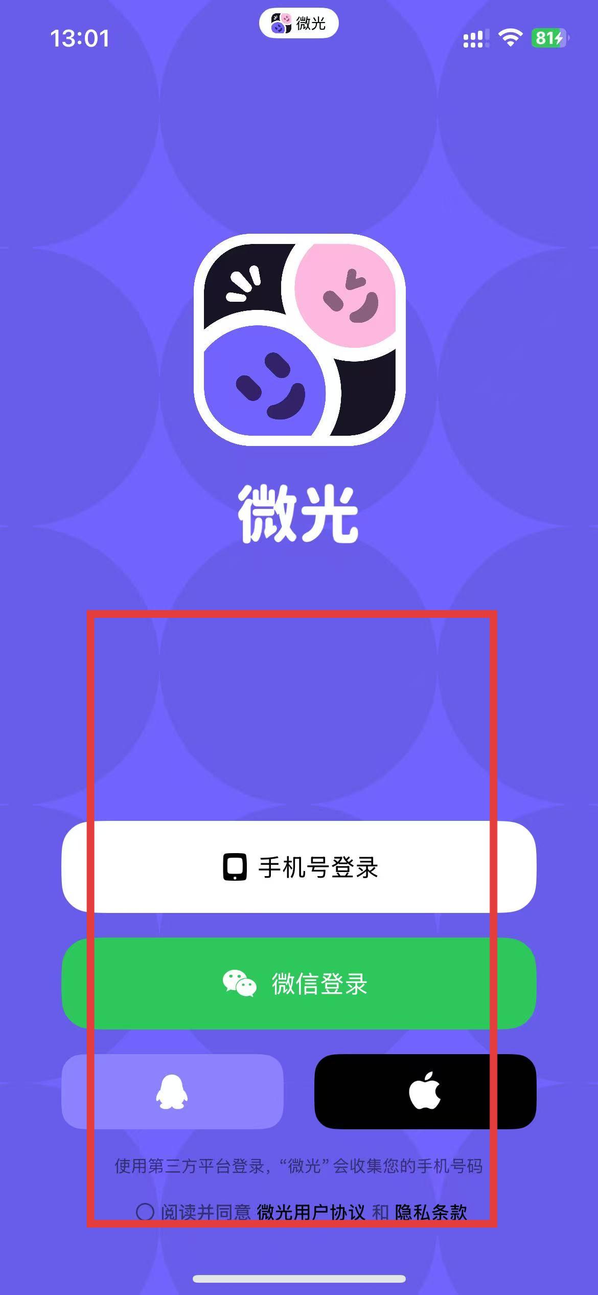 1、打開(kāi)微光App,點(diǎn)擊界面中的手機(jī)號(hào)登錄按鈕。