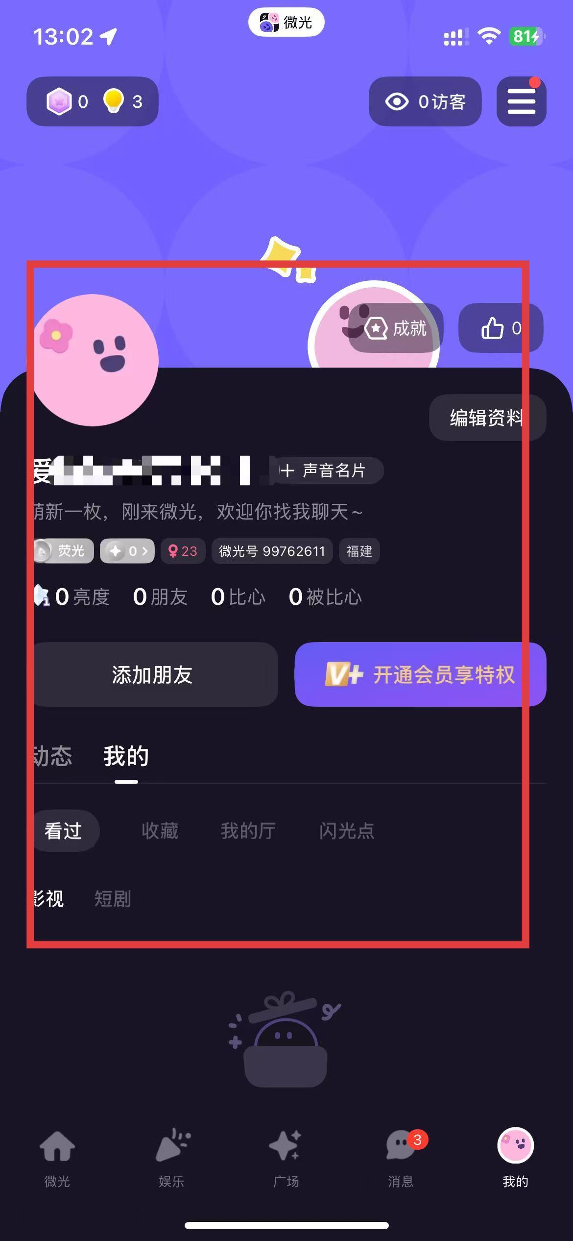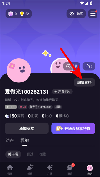 1、打開(kāi)微光APP,點(diǎn)擊右下角我的,進(jìn)入個(gè)人頁(yè)面。