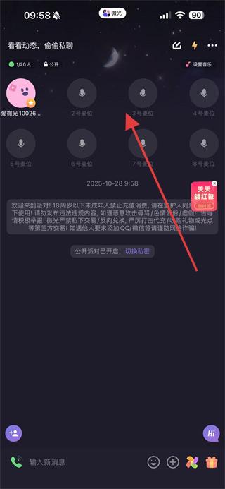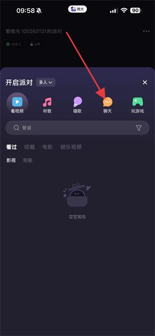 2、在開(kāi)啟派對(duì)頁(yè)面,點(diǎn)擊聊天選項(xiàng)。