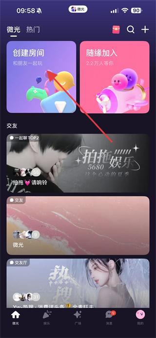 1、打開(kāi)微光應(yīng)用,點(diǎn)擊創(chuàng)建房間選項(xiàng)。