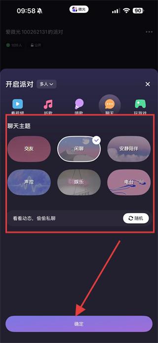 3、選擇聊天主題后,點(diǎn)擊確定按鈕。