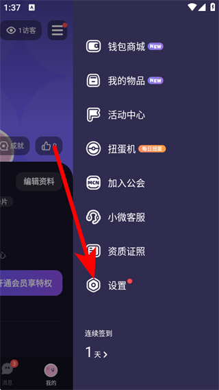 2.在功能菜單中,點(diǎn)擊設(shè)置選項(xiàng)。