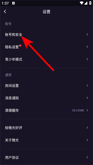 3.進(jìn)入設(shè)置界面后,點(diǎn)擊賬號(hào)和安全選項(xiàng)。