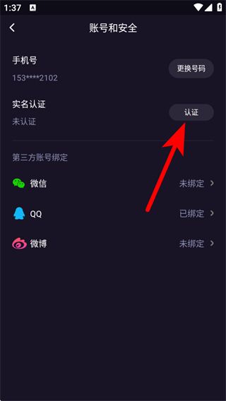 5、進(jìn)入賬號(hào)和安全頁(yè)面后點(diǎn)擊實(shí)名認(rèn)證右側(cè)的認(rèn)證按鈕,按提示完成認(rèn)證。