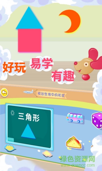 寶寶早教學形狀安卓版是一款非常好玩的形狀認知早教手機游戲,通過搭積木的方式來認識基本的三角形、圓形、正方形等形狀,歡迎喜愛的朋友到綠色資源網下載體驗!