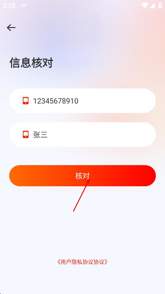 4、輸入完成后,點擊下方的“核對”按鈕,完成信息核對,后續(xù)按提示完成注冊登錄流程即可。