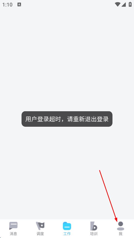 2、若出現(xiàn)“用戶(hù)登錄超時(shí),請(qǐng)重新退出登錄”提示,在界面底部導(dǎo)航欄找到“我”選項(xiàng)并點(diǎn)擊,進(jìn)入個(gè)人相關(guān)頁(yè)面。