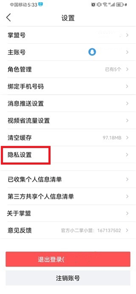 3.在彈出的頁(yè)面下滑找到“隱私設(shè)置”并點(diǎn)擊;