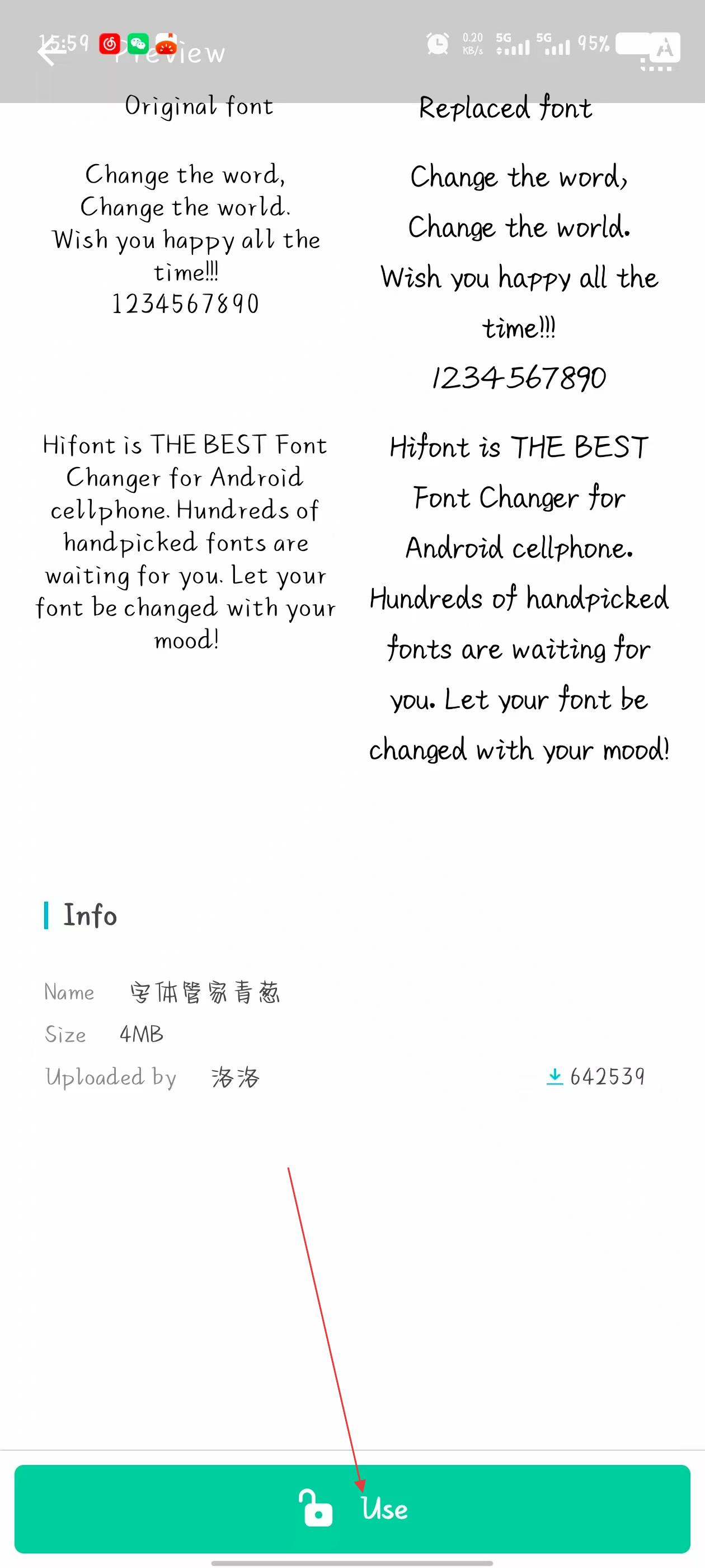 3、解鎖完成后,點(diǎn)擊頁面底部的Use按鈕,發(fā)起字體使用。