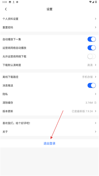 3、進入設置的頁面內,點擊下方退出登錄的按鈕。